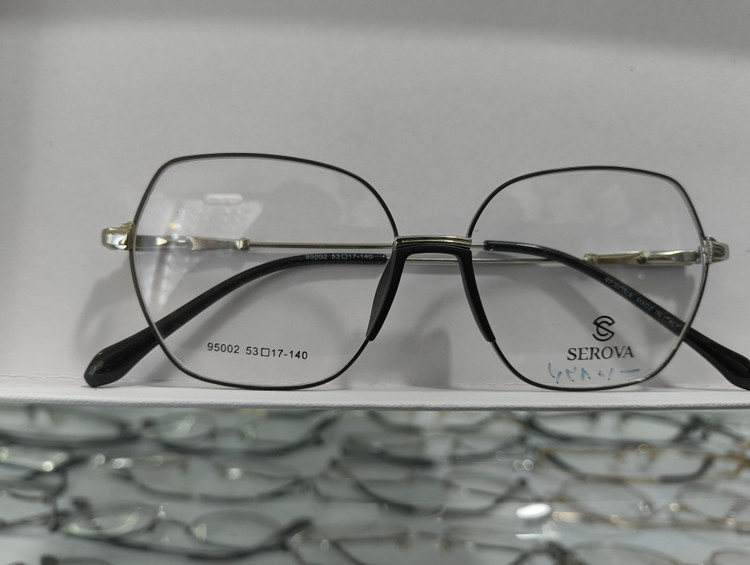 فریم طبی فلزی زنونه برند SEROVA (سرووا) رنگ مشکی مات و نقره‌ای